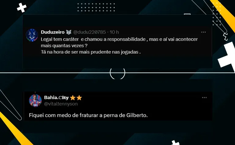 Após o confronto, o lateral cruzeirense usou as redes sociais para pedir desculpas ao torcedor. Então, Gilberto aproveitou a publicação para deixar uma mensagem ao defensor do Cruzeiro.