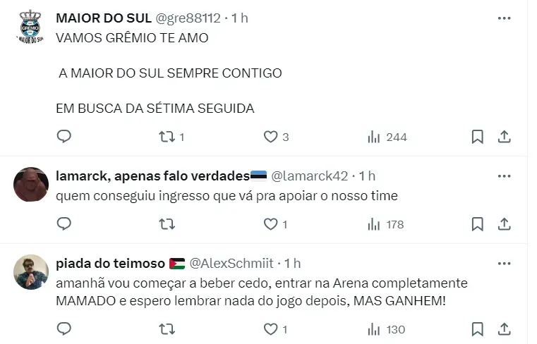 No entanto, a expectativa é de que este confronto possa figurar entre os maiores públicos da história do estádio, caso supere as expectativas. Além da euforia nas arquibancadas, a torcida gremista também aguarda com ansiedade a definição da escalação para a decisão.