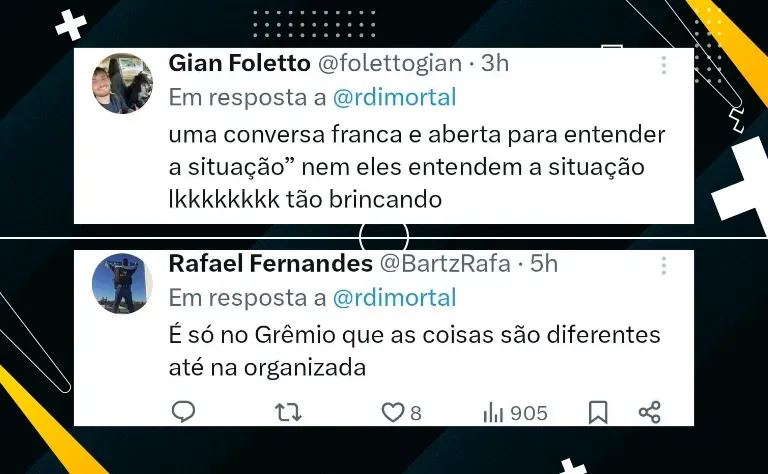 A organizada ainda reforçou que está ao lado do Imortal para apoiar o time. “Reforçamos que a Geral do Grêmio está sempre ao lado do nosso Tricolor. Para apoiar, cantar e fazer a diferença. Exatamente por isso, entendemos que são nesses momentos de dificuldade que precisamos ainda mais nos colocar na linha de frente em prol dos interesses do clube e, principalmente, dos torcedores.”, completou.
