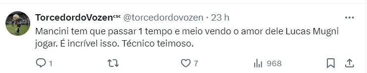 O técnico Vagner Mancini demonstrou sua insatisfação com o desempenho da equipe, especialmente diante da marcação individual imposta pelo CRB, que limitou a circulação de bola e a fluidez do jogo do Vozão. Apesar do revés, o treinador afirmou que a disputa continua em aberto para o próximo confronto.