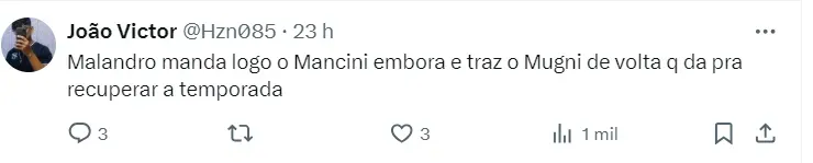 “Um jogo amarrado. Não gostei da partida. Achei que as duas equipes acabaram pecando muito. Muitos erros de passe, muita marcação. O Ceará teve uma boa oportunidade quando estava em 0 a 0, acabou desperdiçando e acabou tomando um gol nos acréscimos”, iniciou Mancini.