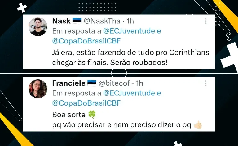 Apesar do momento favorável, a torcida do Juventude está preocupada com a arbitragem nas quartas de final contra o Corinthians. Nas redes sociais, alguns internautas, incluindo rivais, levantaram a possibilidade de favorecimento ao clube paulista, o que gerou discussões acaloradas. “Já era, estão fazendo de tudo pro Corinthians chegar às finais. Serão roubados!”, escreveu um torcedor gremista no X (antigo Twitter).