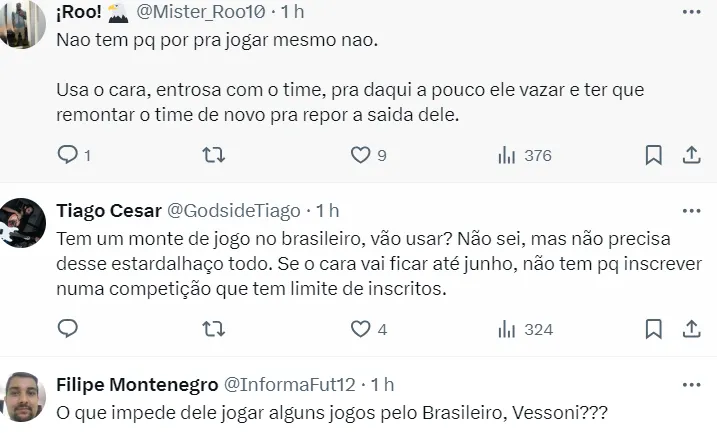 A princípio, o período que o volante fica no Timão engloba toda a primeira fase da Copa Sul-Americana e 15 rodadas do Campeonato Brasileiro. No entanto, ainda gera dúvidas se o atleta será utilizado.