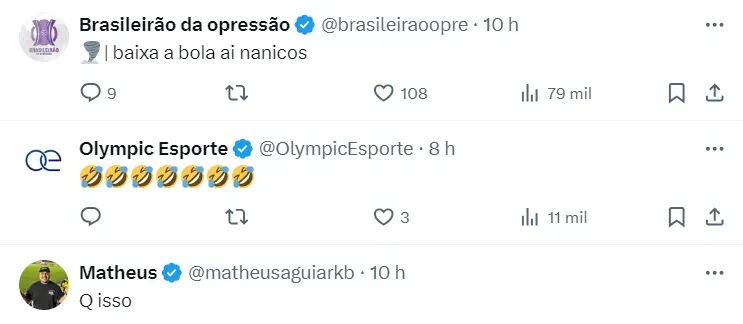 Após a grande vitória como visitante na Sul-Americana, o perfil oficial do Danubio no ‘X’, antigo twitter, se empolgou e provocou muito a equipe de Cuca. Em primeiro momento, o time questionou a grandeza do Furacão e em seguida publicou um trecho de uma música brasileira.