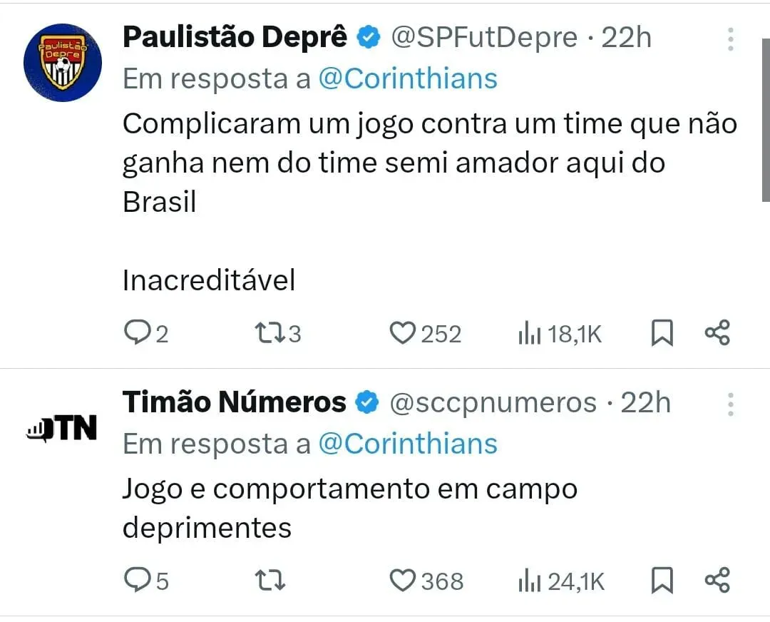 Mas ele não foi o único, Heverton Guimarães também não poupou críticas e durante o programa Jogo Aberto, da Band, não hesitou em afirma que o Timão é o pior entre os grandes clubes de futebol paulista.