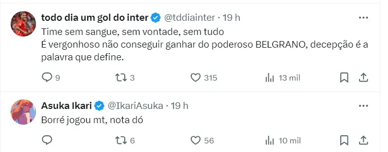 Posteriormente, em um cruzamento de Wesley, o colombiano cabeceou em direção ao gol, porém o goleiro do Belgrano fez uma defesa crucial, frustrando as esperanças do Internacional.