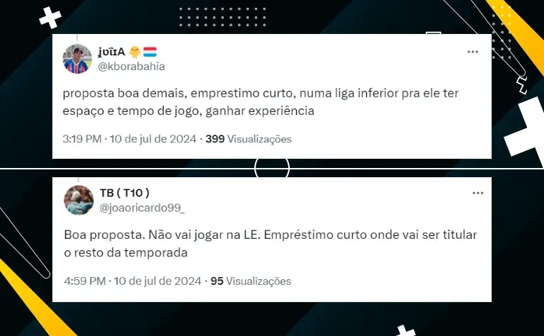 Segundo o GE, a ideia do Bahia é aproveitar a oportunidade para desenvolver o jovem de 22 anos. No momento, na posição, o técnico Rogério Ceni conta com dois jogadores: Luciano Juba e Iago Borduchi (recém-contratado).