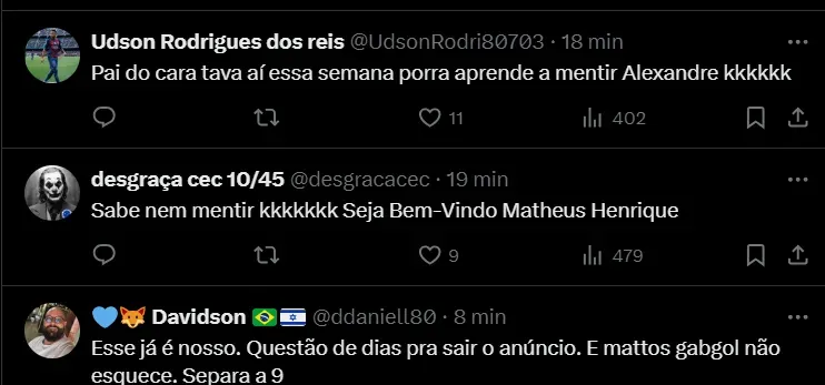 “Não é segredo para ninguém. Nós temos interesse, mas não tem nada avançado por enquanto. Tem o desejo do Cruzeiro e o desejo do Matheus. Ele já escutou o projeto do Cruzeiro. Não acertamos ainda, óbvio. Estamos em contato com o time italiano para tentar fazer essa aquisição. Se não for ele, vamos tentar outro”, revelou Alexandre Mattos.
