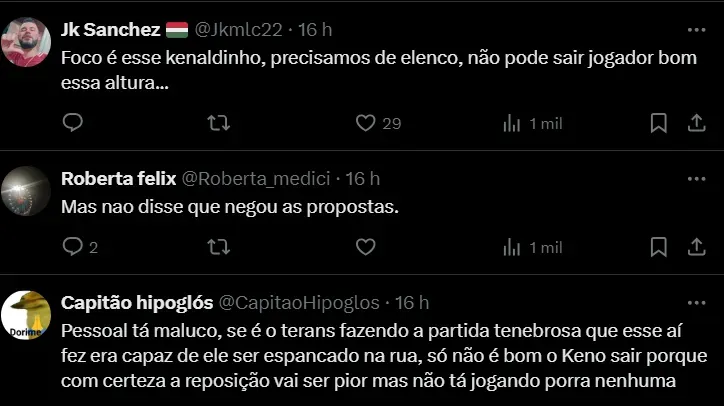 Além do Vitória, outras duas equipes do futebol brasileiro também observa a situação do atleta: Cruzeiro e Athletico-PR. Inclusive, apesar da declaração de Keno, o clube mineiro mostra confiança na contratação do jogador, de acordo com a Itatiaia.