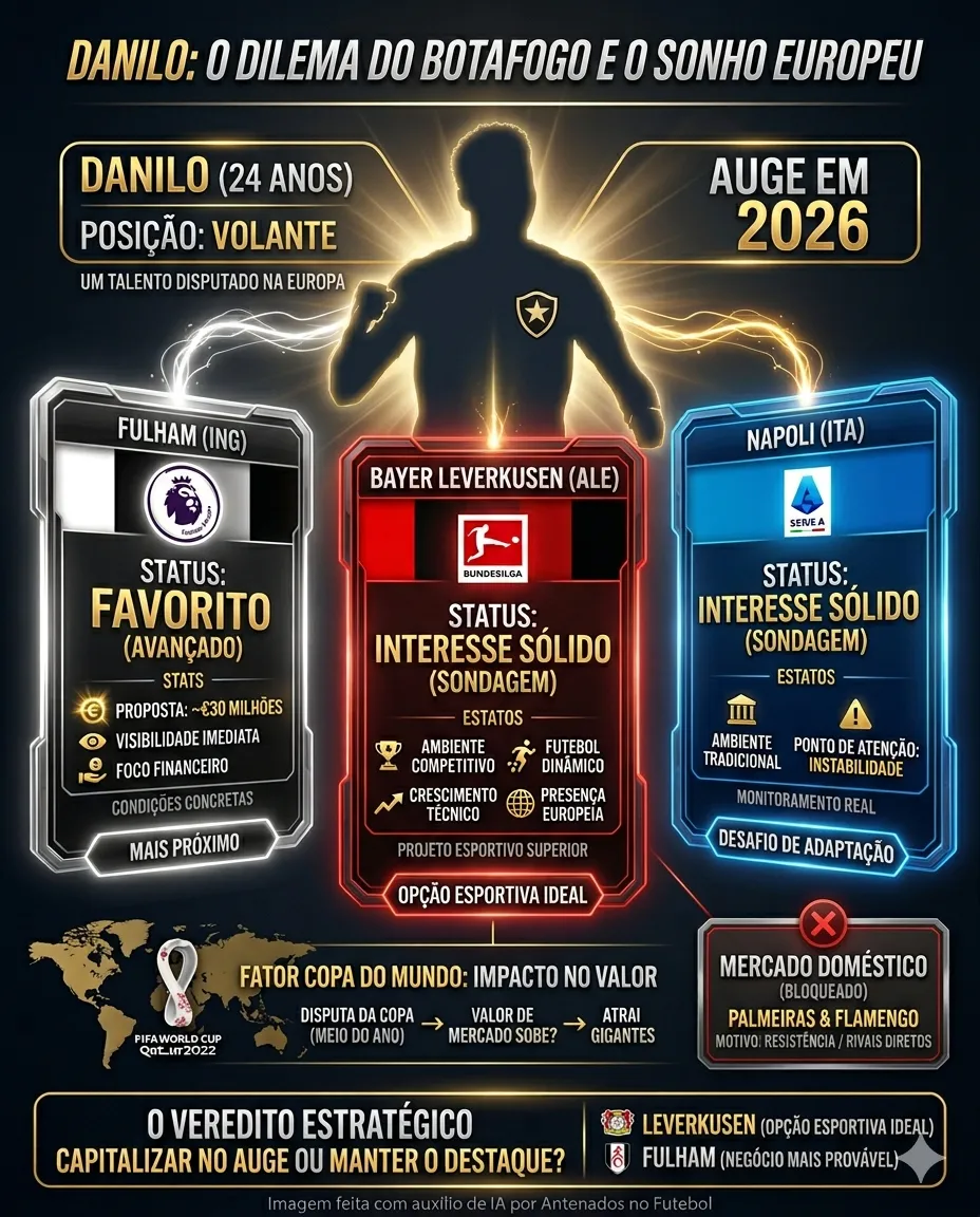 Para um jogador com as características de Danilo, esse contexto potencializa crescimento técnico e visibilidade internacional. Em comparação, o Napoli apresenta um cenário mais instável, enquanto o Fulham, apesar da força financeira da Premier League, não oferece o mesmo nível de ambição esportiva.