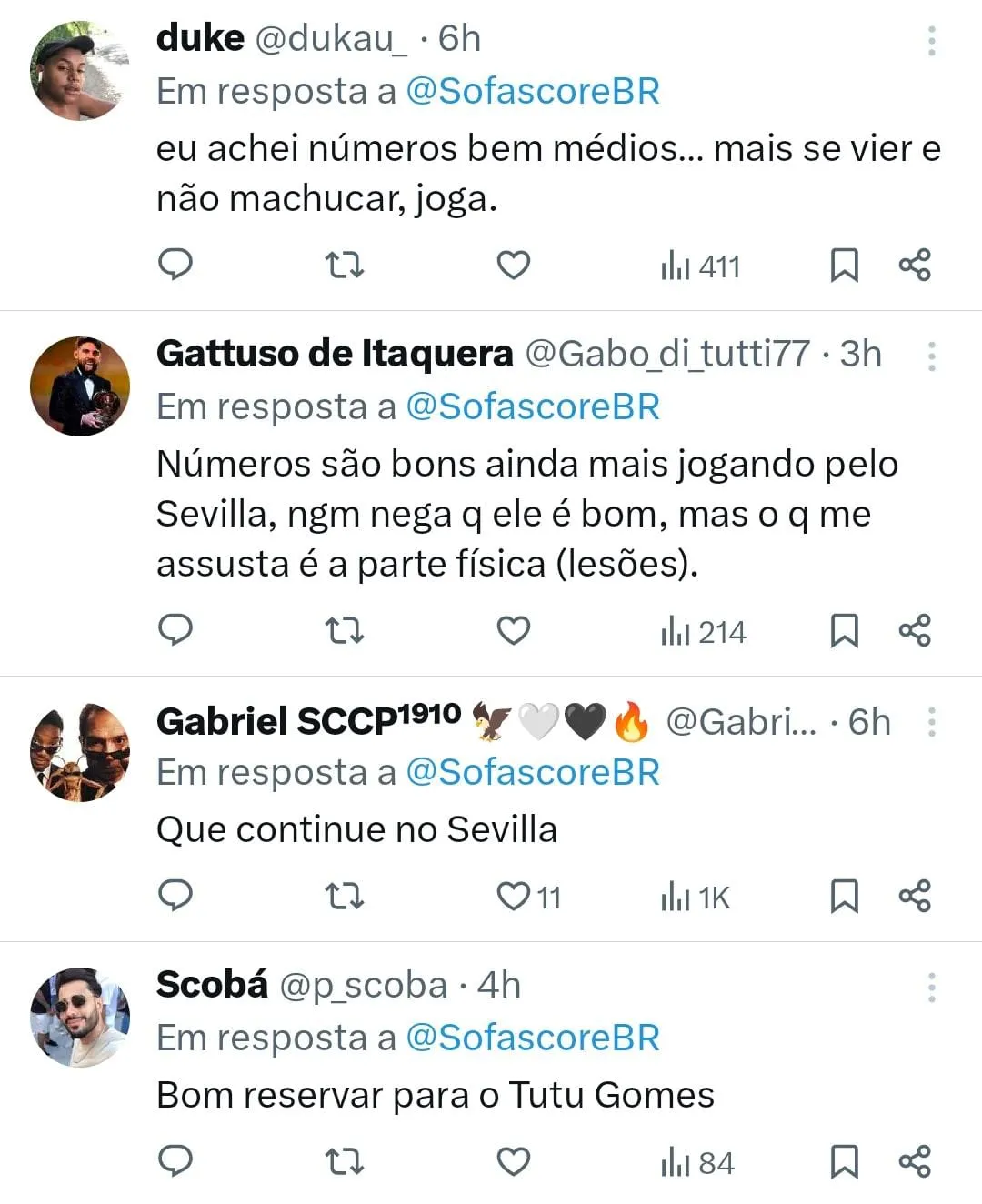 Outro nome que estaria no radar do clube paulista é o meia Erik Lamela, do Sevilla. De acordo com informações de bastidores o Timão teria feito uma proposta pelo argentino de 32 anos. De acordo com André Hernan, existe o interesse, mas nenhuma oferta foi feita de forma oficial.