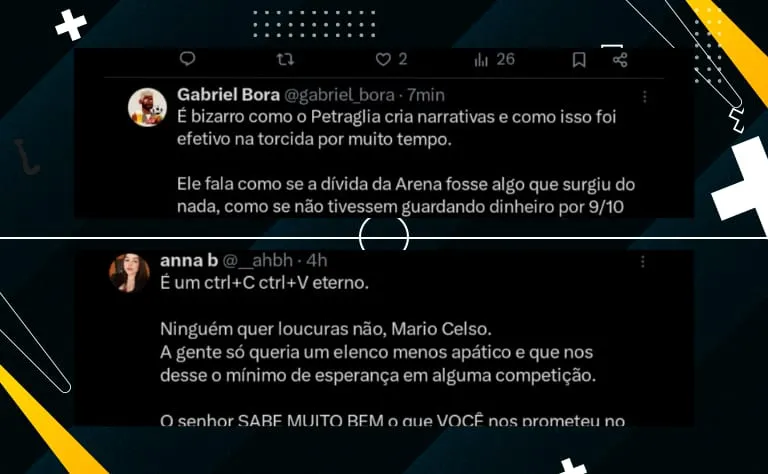 “Nunca investimos no futebol como temos feito ultimamente, mas nossa torcida, a quem temos o maior respeito a todos que fazem parte de mais de 2 milhões de torcedores, quer e faz questão que sejamos campeões de todas as competições que disputarmos, todos os anos!”, completou.