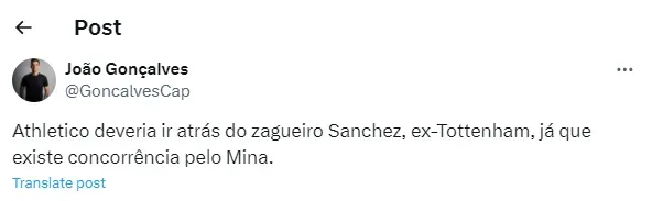 Todavia, mesmo ainda lamentando a derrota, nas últimas horas, outro assunto chegou para agitar as alamedas do Maior do Paraná: uma informação envolvendo o famoso mercadão da bola. Sobre o tema, de acordo com os jornalistas Felipe Silva e Tiago Marchezini, um zagueiro foi sondado pela direção.