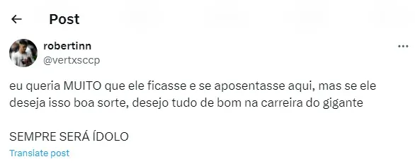 “O Cruzeiro se acertou com o goleiro Cássio, do Corinthians, e tenta a liberação do clube paulista para seguir com a contratação do jogador de 36 anos. O arqueiro defende o Timão desde 2012 e tem contrato até o fim de temporada 2024”, frisou a fonte citada acima.