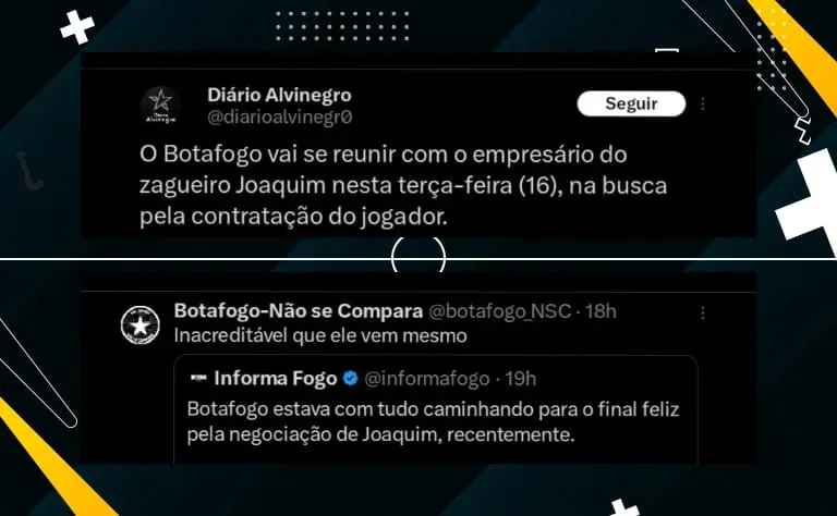Além disso, foi informado que o Alvinegro Carioca tem outras opções em mente para reforçar o elenco. Com isso, o Clube também procura jogadores ofensivos do meio para a frente.
