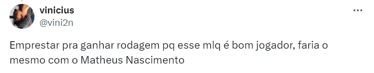 Outro jogador que também pode deixar o Rio de Janeiro é Matheus Nascimento. Cria do Clube, o atleta não vive boa fase, mas mesmo assim, está recebendo novas sondagens de times europeus, mas não teve nenhuma proposta.