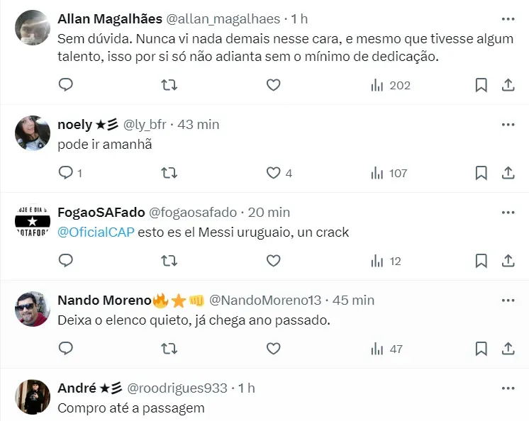 Outro tema que também bombou entre os botafoguenses foi Savarino. Isso porque, ao que tudo indica, para a partida deste final de semana no Brasileirão, o atacante pode reforçar o elenco de Artur Jorge.