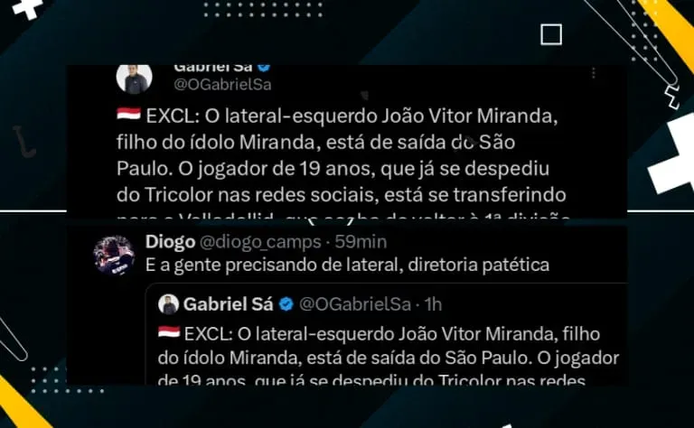O São Paulo acertou a saída do lateral-esquerdo João Vitor Miranda, filho do ídolo do clube, Miranda. O defensor de 19 anos, inclusive, se despediu da torcida nas redes sociais.