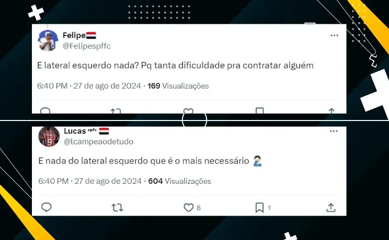 Apesar das decisões, a diretoria também está focada no mercado da bola. A ideia é trazer um volante e um lateral-esquerdo até a próxima semana, que é quando se encerra a janela de transferências no futebol brasileiro.