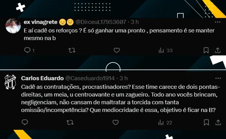Entretanto, o mercado da bola está agitando os bastidores do clube cearense. Isso porque, o Vozão anunciou o empréstimo do goleiro César Augusto, de 20 anos, para o Nacional, de Portugal. Apesar de ser por empréstimo, o contrato conta com uma cláusula de opção de compra, caso o time português resolva adquirir o arqueiro.