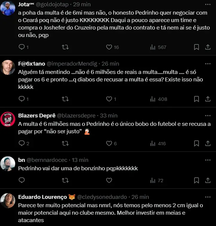 De acordo com o jornalista Jorge Nicola, o presidente do Ceará, João Paulo, confirmou a procura do Cruzeiro e deixou claro que recusou a primeira proposta da equipe mineira pelo jovem zagueiro.