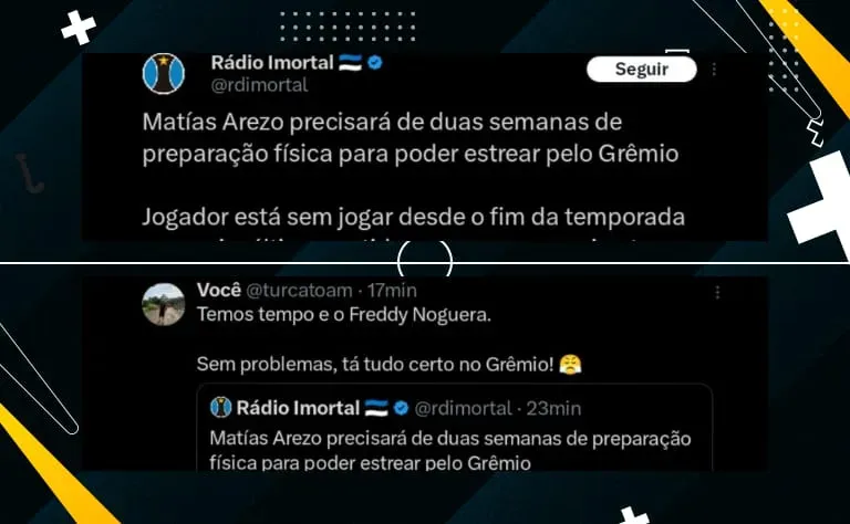 E neste sábado (13), o jornalista Diogo Rossi informou que Arezo vai demorar um pouco mais para fazer sua estreia no time de Renato Portaluppi, bem mais que os demais possíveis reforços.