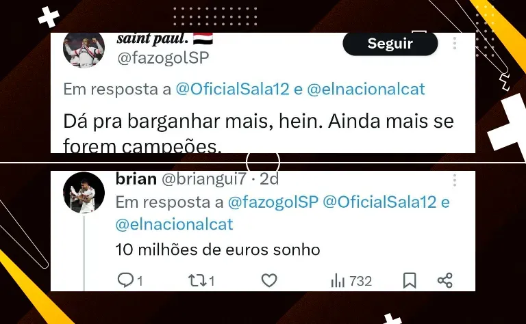 Nicola apresentou três pontos que questionam o interesse: primeiro, o valor apresentado. Segundo ele, a diretoria está disposta a negociar o meia de graça para deixar de pagar seu salário mensal de R$ 1,5 milhão.