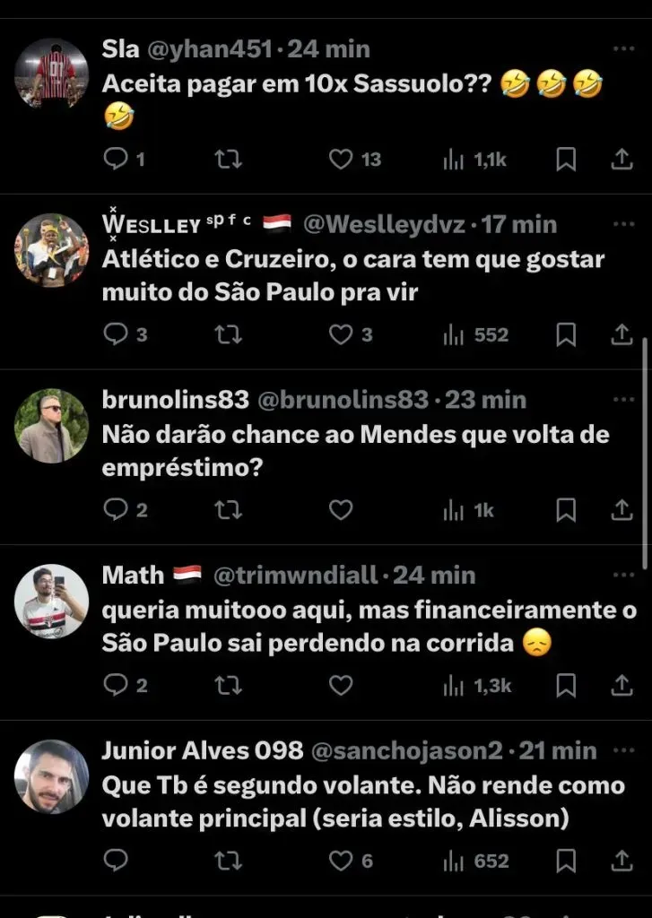 Na quarta-feira (22), o GOAL trouxe à tona que, além do São Paulo, Cruzeiro e Atlético-MG também demonstraram interesse no jogador. Atualmente, ele está com o futuro indefinido na Itália.