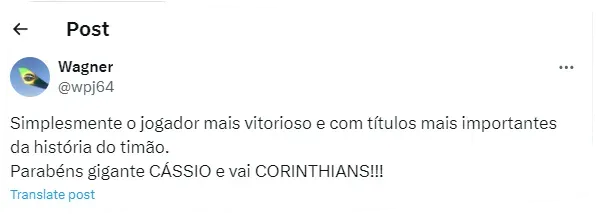 Ainda citando a grande goleada, ela foi especial, pois após grave lesão no joelho, Paulinho voltou a atuar no gramado da Arena. Todavia, outro assunto segue ‘agitando’ as alamedas do Bicampeão Mundial: trata-se do futuro do goleiro Cássio.