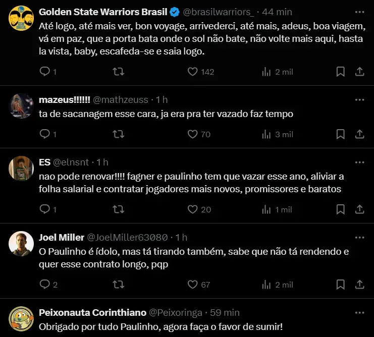 Em resumo, de acordo com informações do jornalista Luis Fabiani, da Itatiaia, o Corinthians quer a manutenção do jogador por mais seis meses. No entanto, o Paulinho busca a renovação até dezembro de 2025, o que tem sido uma divergência entre as partes.