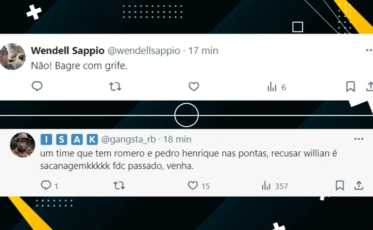 Trata-se do atacante Willian, que deixou o Fulham, da Inglaterra. De acordo com as informações publicadas pelo jornalista Samir Carvalho, do UOL, o atleta topa voltar ao Corinthians, mas depende da aprovação da torcida.