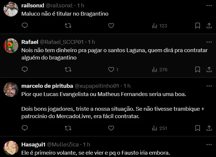 Resumidamente, o Timão tem interesse no atleta e está disposto a negociar a contratação do volante. Contudo, ao mesmo tempo, o Alvinegro sabe que não será fácil chegar a um denominador comum, principalmente pelo momento que vive.