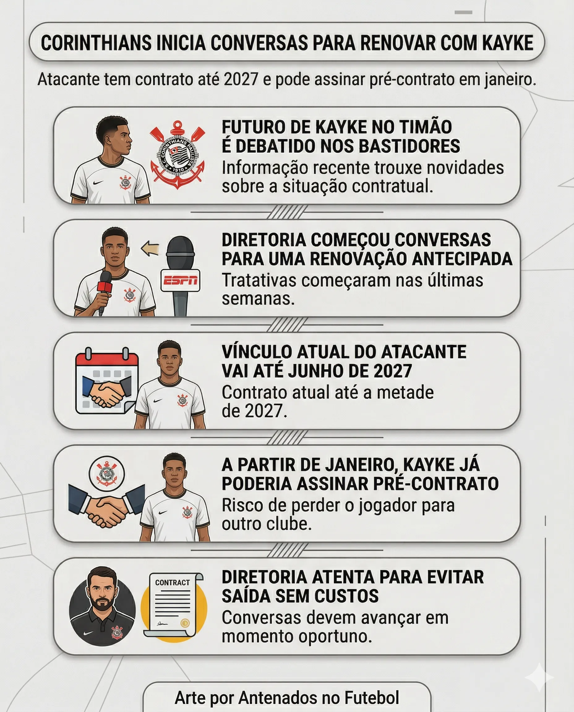 A decisão do Corinthians de buscar a renovação de Kayke é coerente com o momento do jogador e com a necessidade de planejamento do elenco. O atacante é jovem, tem vínculo longo, mas já começa a chamar atenção e pode evoluir com mais oportunidades. Ao se antecipar, o clube se protege de possíveis investidas e mantém no elenco um atleta com potencial de crescimento ao longo da temporada.