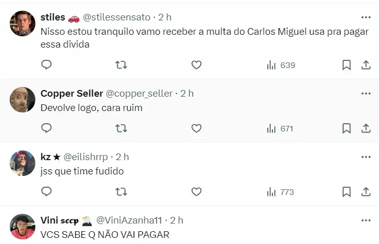 Além disso, o tema que também repercutiu foi Félix Torres. Isso porque, recentemente, o Santos Laguna notificou o Clube de uma dívida de R$ 5,8 milhões, onde o Timão atrasou o pagamento da parcela de compra do jogador.