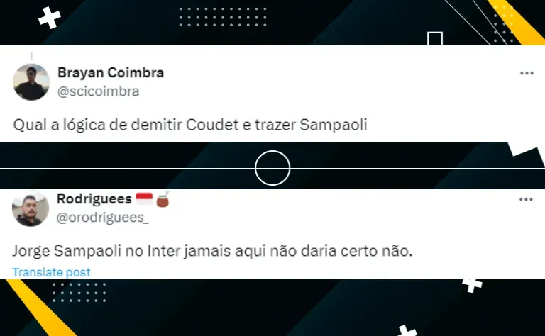 Agora, pensando no novo técnico, um nome que já passou pelo futebol brasileiro foi ‘cogitado’, o de Jorge Sampaoli. Todavia, a torcida do Maior do Sul já tomou uma postura imediata e tratou de rejeitar o gringo. Sendo assim, os seguintes comentários vieram à tona (SIC).