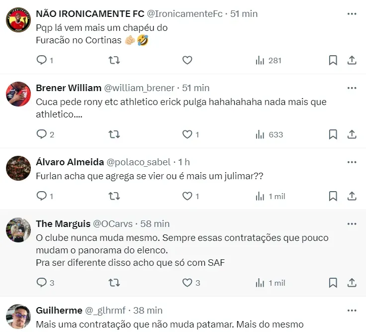 Mas outro assunto veio à tona nos bastidores: Christian. Isso porque, na última terça-feira (28), surgiu a informação de que o jogador entrou no radar do Cruzeiro. Em contrapartida, o Furacão já tomou uma decisão.