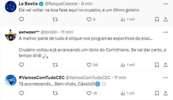 “Para mim, é o melhor caminho para o Cássio, mas não é o melhor para o Corinthians. É melhor para o Cássio por causa da situação anímica, de motivação, para conseguir jogar mais três ou quatro anos em alto nível”, finalizou o ex-jogador.