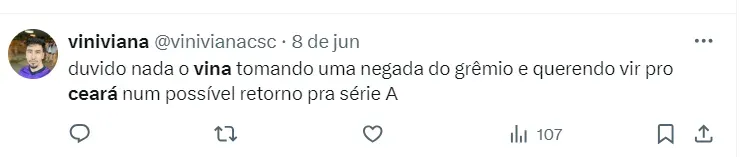 Além de seu desempenho recente, Vina possui uma carreira significativa no futebol brasileiro. Entre 2019 e 2022, ele se destacou no Ceará, onde marcou 46 gols e deu 31 assistências em mais de 160 partidas.