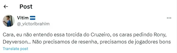 Sobre o tema em questão, nas últimas horas, uma notícia chegou para vetar qualquer possibilidade do ex-Palmeiras desembarcar em solo mineiro. Isso porque, de acordo com o jornalista Jorge Nicola, o clube não possui interesse no atleta.