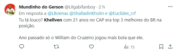 Desde que chegou, Khellven acumula 31 partidas, marcando um gol e distribuindo nove assistências. O Athletico Paranaense ainda detém 20% dos direitos econômicos do lateral, podendo lucrar com uma venda futura.
