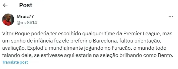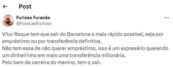 Sendo assim, a seguinte informação veio à tona. “Sobre Vitor Roque, há tensão nos bastidores, mas o relacionamento entre seu agente e Barça é bom. Uma reunião acontecerá entre o estafe e o time da La Liga. Acho que o Barcelona vai insistir no empréstimo”, frisou a fonte citada acima.