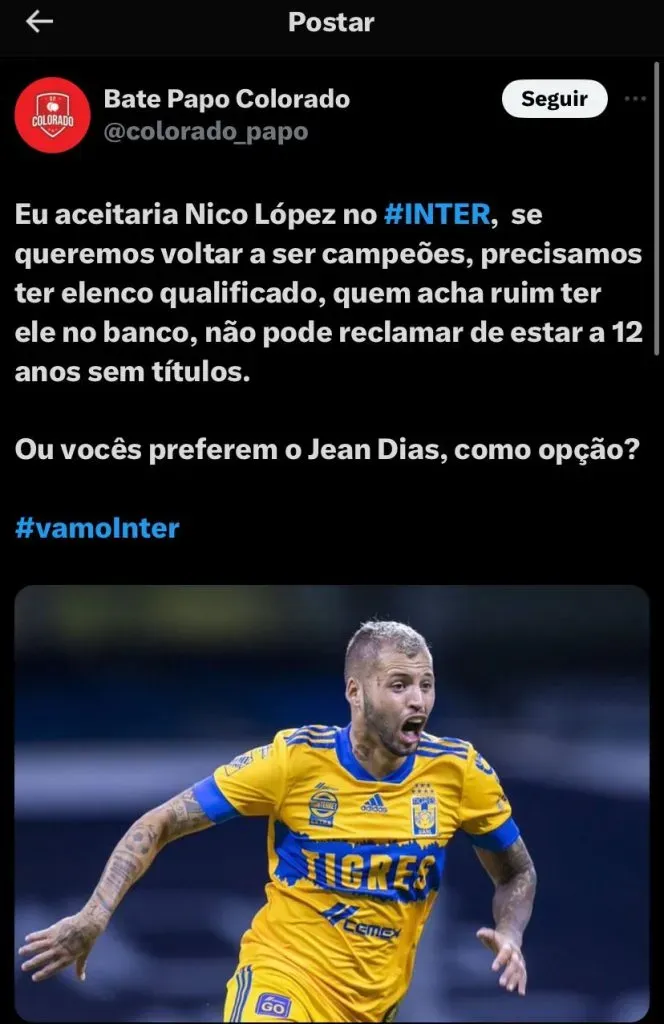 Acha que o Inter deveria entrar em leilão pelo Nico?