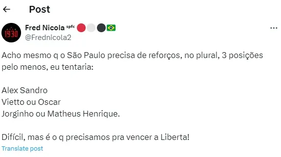 Vale frisar que além de colocar a equipe no G-4 do torneio nacional, o novo triunfo de Lucas Moura e seus companheiros também manteve a invencibilidade do técnico argentino Zubeldía. Todavia, nesta quinta-feira (6), outro assunto agitou os bastidores do Soberano: trata-se do mercadão da bola.