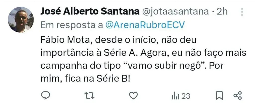 Com a sequência ruim do rubro-negro baiano, a torcida tem feito fortes críticas ao elenco e vem pedindo uma reformulação da equipe. Durante a coletiva, o presidente Fábio Mota deu um balde de água fria no torcedor que esperava uma limpa no Barradão. O dirigente afastou a ideia de que irá dispensar jogadores.
