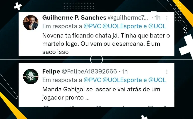 A publicação também descartou a possibilidade de uma troca entre Gabigol e Dudu. “O Palmeiras pensa em Gabriel para janeiro. Terá concorrência e o jogador não precisa se apressar para decidir”. Além disso, Gabigol voltou a ser inscrito no Brasileirão e, caso complete seu sétimo jogo, não poderá defender outro clube na competição.