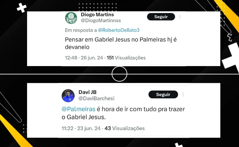 “Se o Gabriel Jesus avisou que não vai ficar no Arsenal e que está disposto a aceitar uma proposta, ótimo. Faz uma contratação de impacto. Para trazer alguém igual, é melhor ficar com o Flaco — que faz sua melhor temporada no ano — e o Rony.”, disse o jornalista durante a Live do Palmeiras no Youtube do UOL Esporte.