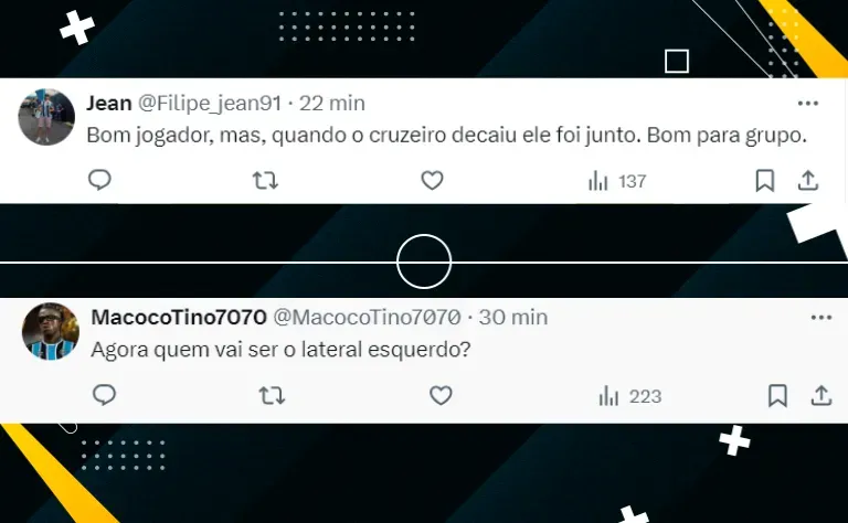 “Cruzeiro recusou mais uma proposta de venda do lateral-esquerdo Marlon. Dessa vez o interessado foi o Grêmio. São Paulo e Red Bull Bragantino também se interessaram pelo lateral nesta janela. Marlon está nos planos do Clube e do técnico Fernando Diniz pra temporada 2025”, disse o jornalista.