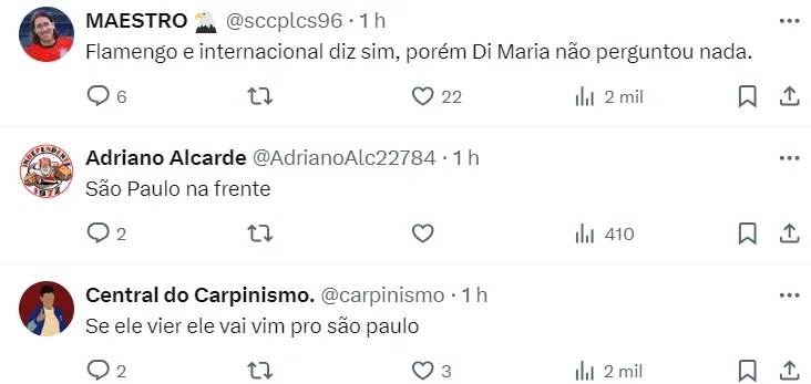 Resumidamente, o argentino tomou uma decisão importantíssima, que afeta diretamente o Internacional, aliás, o Flamengo, que era outro interessado no atleta, também. De acordo com informações do jornalista Pedro Sepúlveda, Di María não tem interesse em atuar no futebol brasileiro.