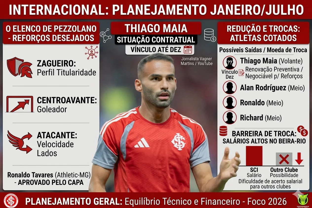 Além de Thiago Maia, os meio-campistas Alan Rodríguez, Ronaldo e Richard também foram identificados como atletas que podem deixar o Beira-Rio. A intenção é reduzir a folha salarial ou facilitar a vinda de reforços, embora a diretoria reconheça obstáculos operacionais para concretizar essas movimentações através de trocas com equipes brasileiras.