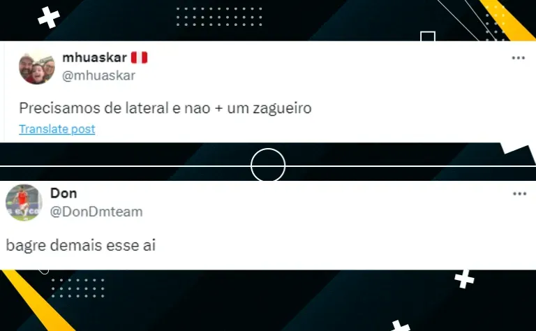 “Esse aí é um baita bagre, espero que a negociação mele já nas próximas horas”. “Nossa direção está de brincadeira em cogitar um cara assim, ele é muito ruim”. “O jogador em questão nunca teve tanto brilho na carreira, não deveria nem ser cogitado”.